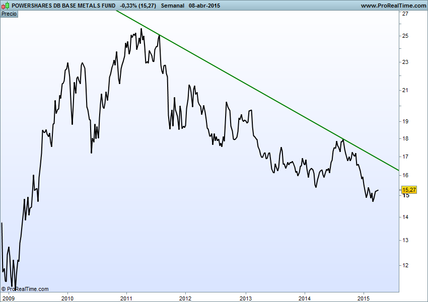 Vean también que los metales básicos, que son un indicador clave y anticipatorio de la marcha de la economía siguen cayendo (el grafico muestra un tracker con un agregado de metales básicos). Esto, que puede ser malo para la economía real, es bueno para la economía financiera. Le van a seguir dando alfalfa al burrito.