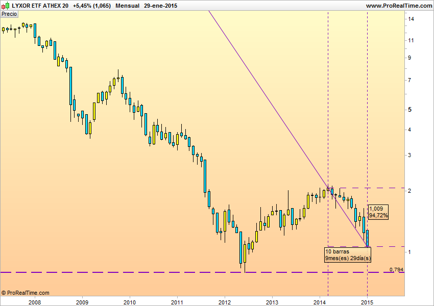En esté gráfico lo que quiero destacar es que desde 2007 a hoy la bolsa griega ha caído un 96%. Un país de Europa ha sido borrado del mapa….y yo que pensaba que la crisis ya estaba superada…pues no era así De Guindos