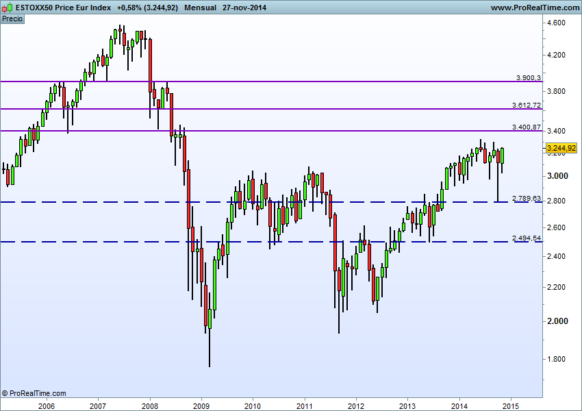 Vamos a hacer un ejercicio de visualizar el futuro y pensar algunos escenarios para el Eurostoxx 50 en caso de que si. Y en caso de que no.