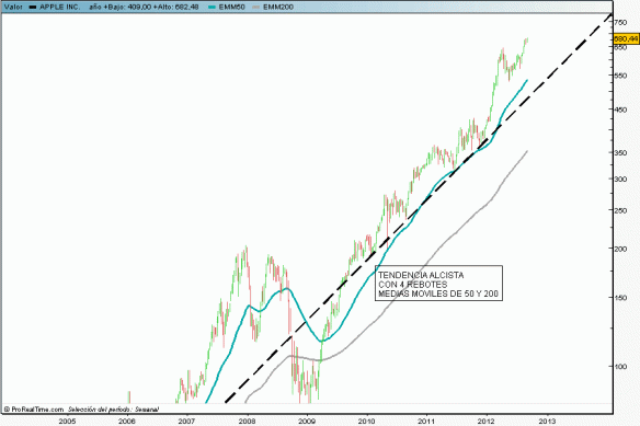Si llega a 700 ya veremos lo que hacemos pero de momento es una apuesta muy clara para entrar y para entrar ya a precio de mercado. Me falta volumen para confirmar la subida y tengo la mosca detrás de la oreja con el dichoso Fiscal Cliff (que parece que se está enderezando sin problemas) pero aún así para mi Apple es una compra clara, el precipicio fiscal americano no se hasta que punto puede afectar a una franquicia mundial como ésta. Hasta en China importan Iphones de contrabando.