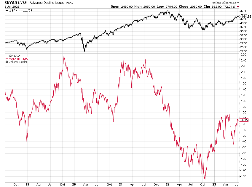 El fondo del mercado no es tan bueno como marca el precio. No quiero contradecirme, precio manda pero la amplitud de mercado nos va a decir si las subidas son sanas o no (si la mayoría de acciones suben con el mercado o son unas pocas grandes acciones las que lo mueven).
