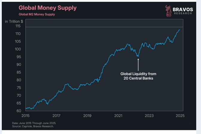 Pero puede haber buenas noticias para los mercados. En mayo 2026 acaba el mandato de Jay Powell y los mercados descuentan cambios en la política monetaria antes incluso de que se produzca el relevo. Mucho me temo, que el tito Trump no le va a renovar el mandato y va a hacer un Santiago Segura: poner un amiguete. Las notas a dos años llevan meses paradas pero muestran un incipiente sesgo a la baja. Cuando rompan resistencia van pabajo seguro (no hay mejor proxy para determinar los tipos que las notas a dos años). Junto con tipos más bajos puede haber un aumento de liquidez y el helicóptero que tira billetes pondrá muy feliz a los mercados y a los republicanos por el efecto riqueza que eso genera. OJO, esto que es bueno para los mercados puede ser letal para la economía e hinchar más y más la burbuja de deuda y del déficit público.
